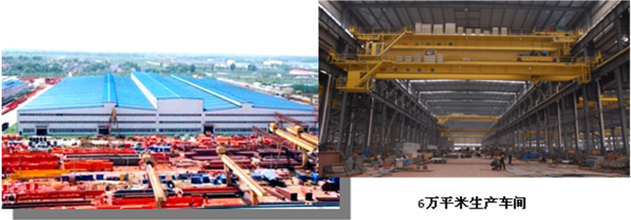 ; 各種起重機生產制造用專業廠房面積近24萬平方米。其中含有全球本行業最大的起重機聯合加工車間(6萬平方米),可以確保起重機生產不受刮風、雨淋、日照、溫差等嚴重影響產品質量因素的影響。