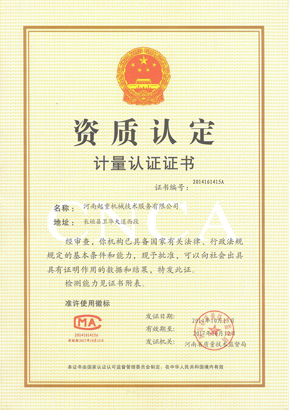 計量認(rèn)證證書