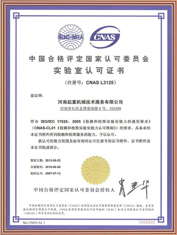 實驗室認(rèn)可證書