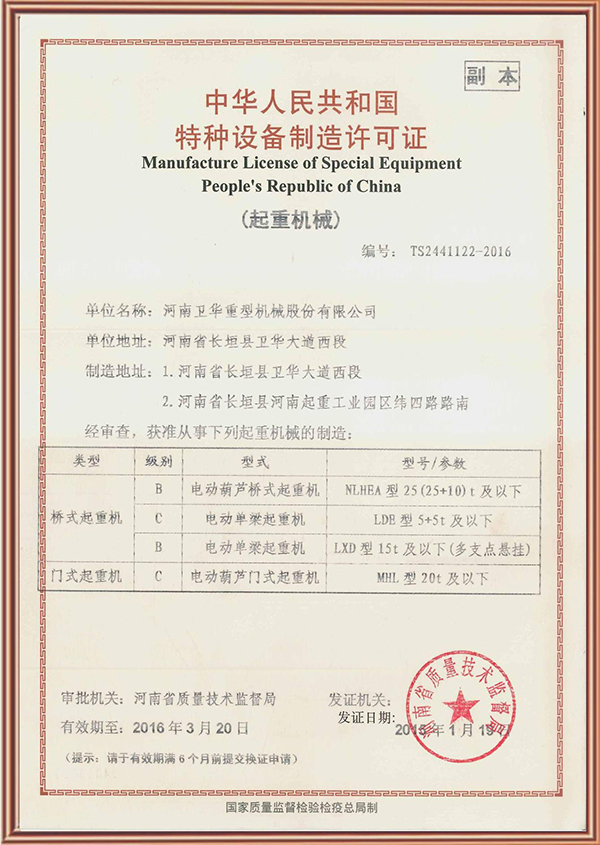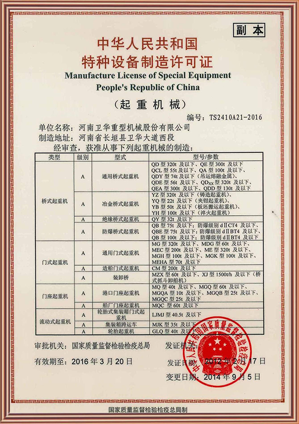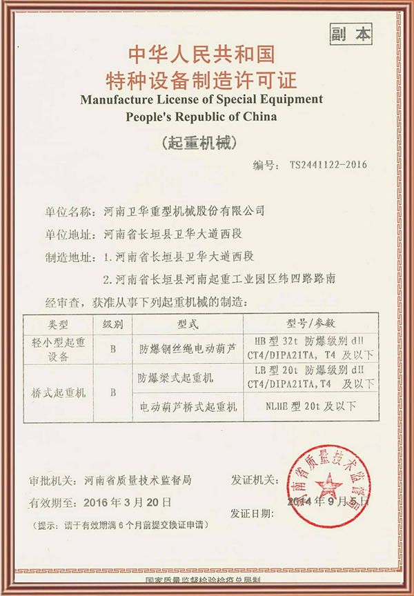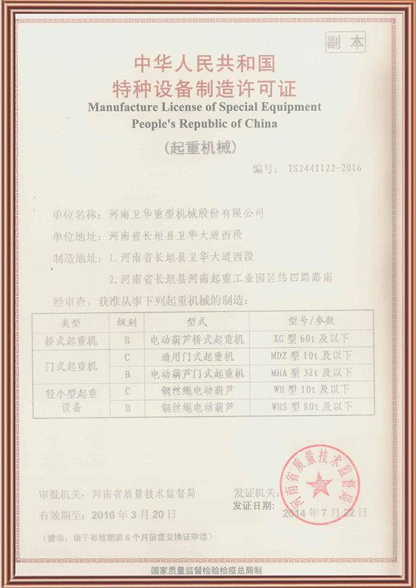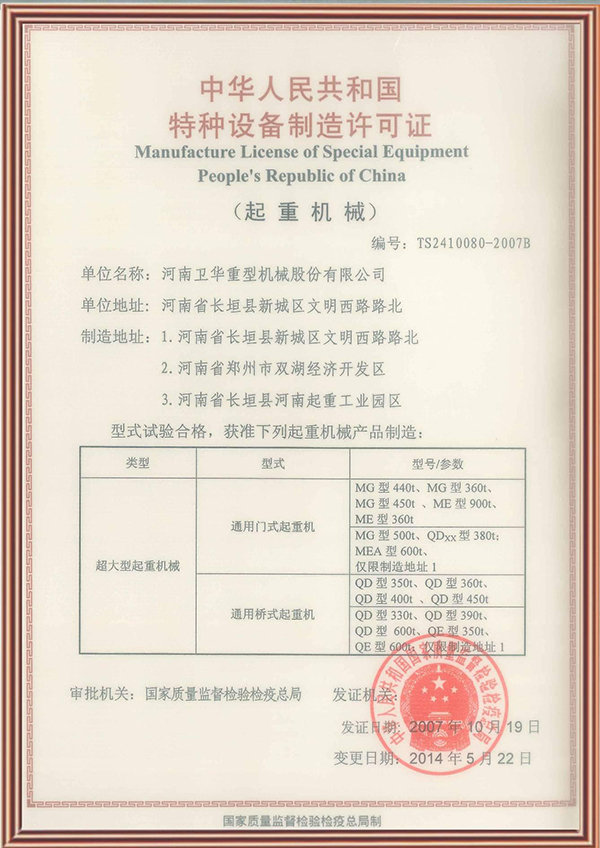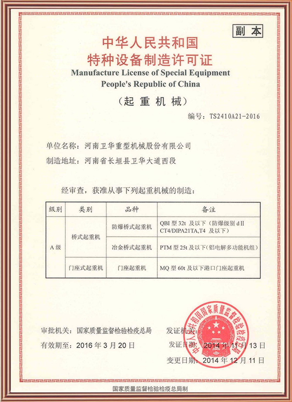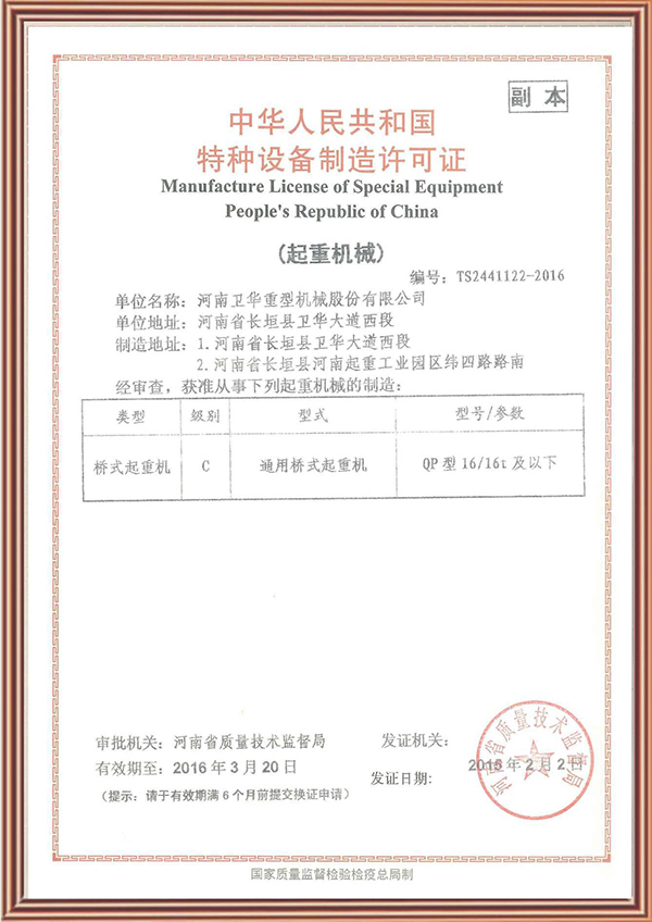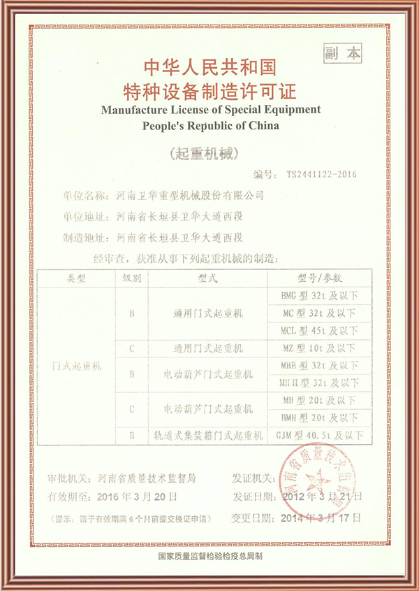 特種設(shè)備制造許可證